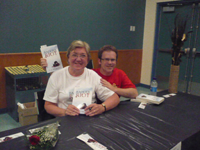 Guests line up to get their books signed.