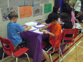 Children draw pictures at the art