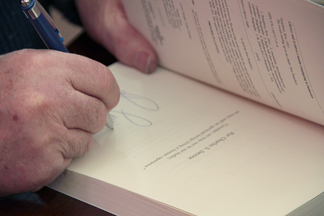 Ron Pumphrey signs a copy of The Events