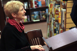 Anne Galway signs a copy of Stories from the Hole in the Ceiling for a guest. |