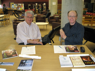 Edward Roberts, editor of Peter Cashin: My Fight for Newfoundland, and Paul Butler, author of Titanic Ashes, share a table.